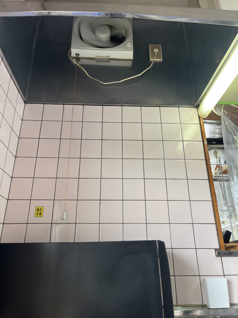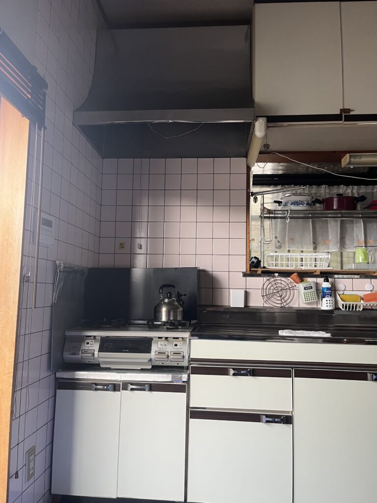 普段からのお手入れの甲斐あってパッと見はきれいですが、換気扇やフードの中は油汚れが固まってギトギトの状態です