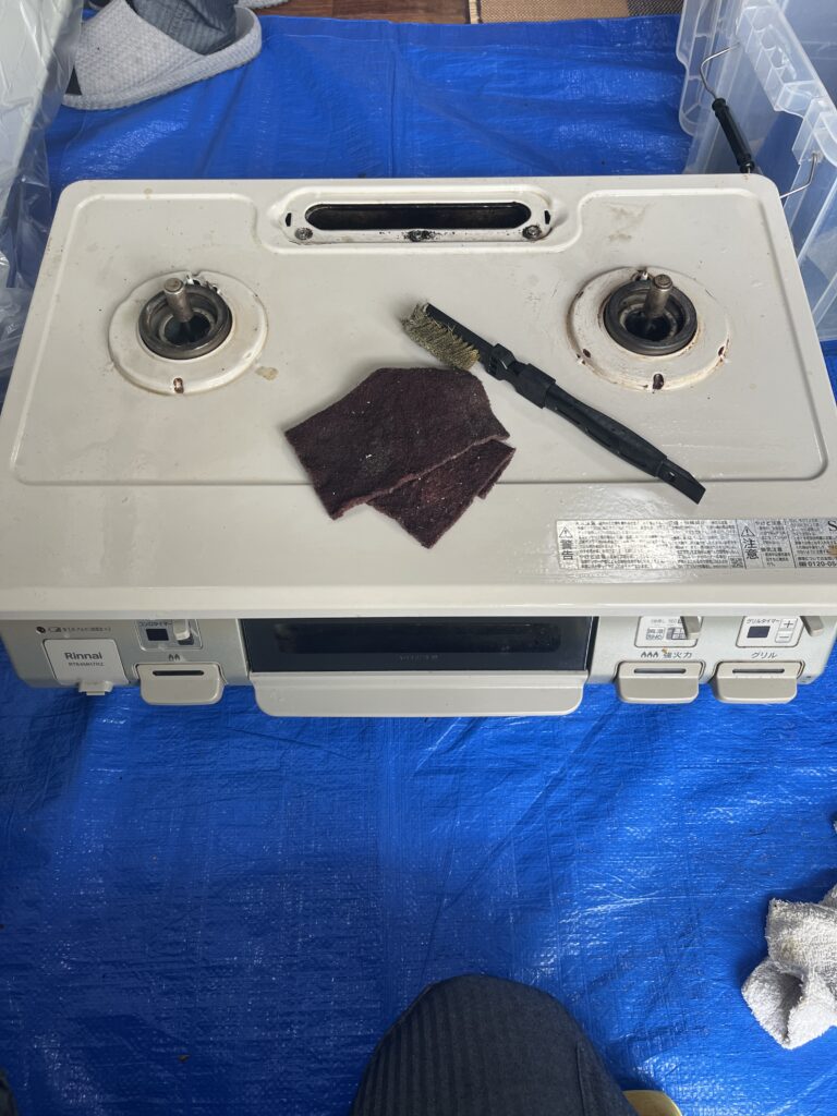 ガスレンジも取り外して掃除し、ガス台も隅々まで洗浄しました